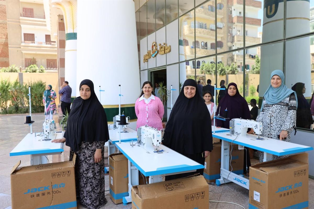 وقد تسلمت 5 سيدات ماكينات خياطة في إطار مشروع المساهمة في خلق فرص عمل للمرأة في صعيد مصر الممول من الوكالة الإسبانية للتعاون الدولي، مبادرة دعم مجموعات الإنتاج النسائية من خلال التدريب وتوريد مستلزمات التشغيل.