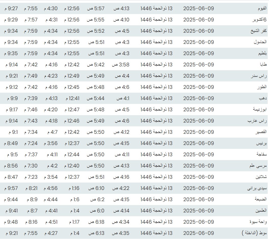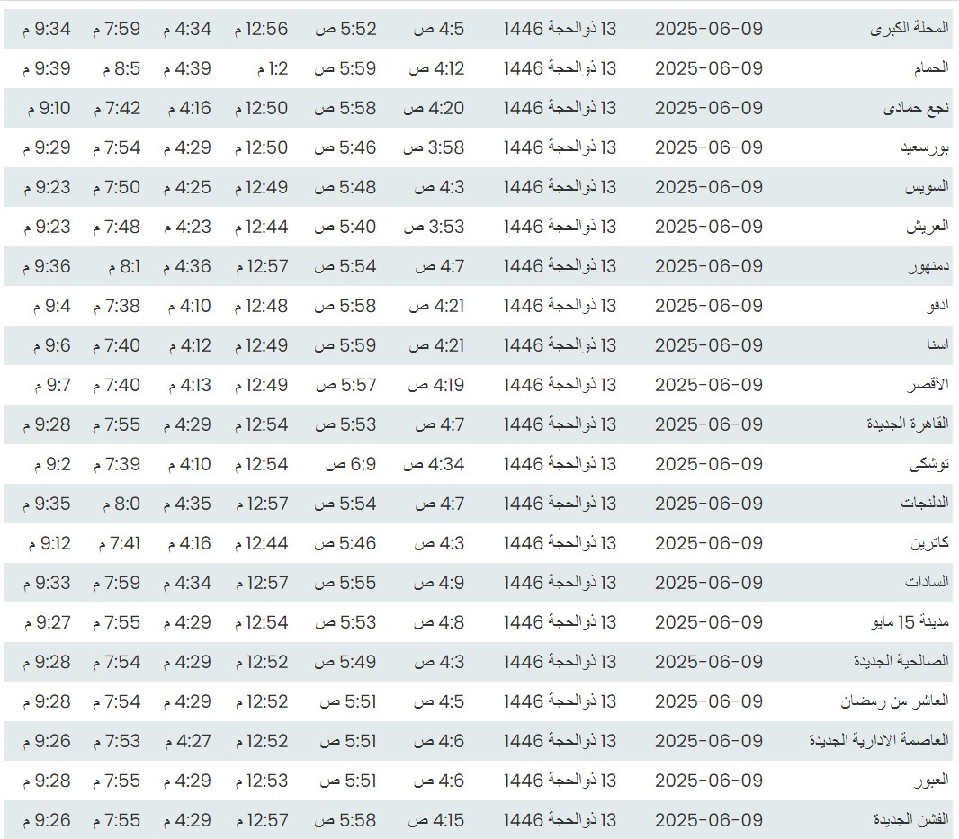 وفيما يلي مواقيت الصلاة، لعدد من مدن ومحافظات الجمهورية من واقع بيانات الهيئة العامة للمساحة