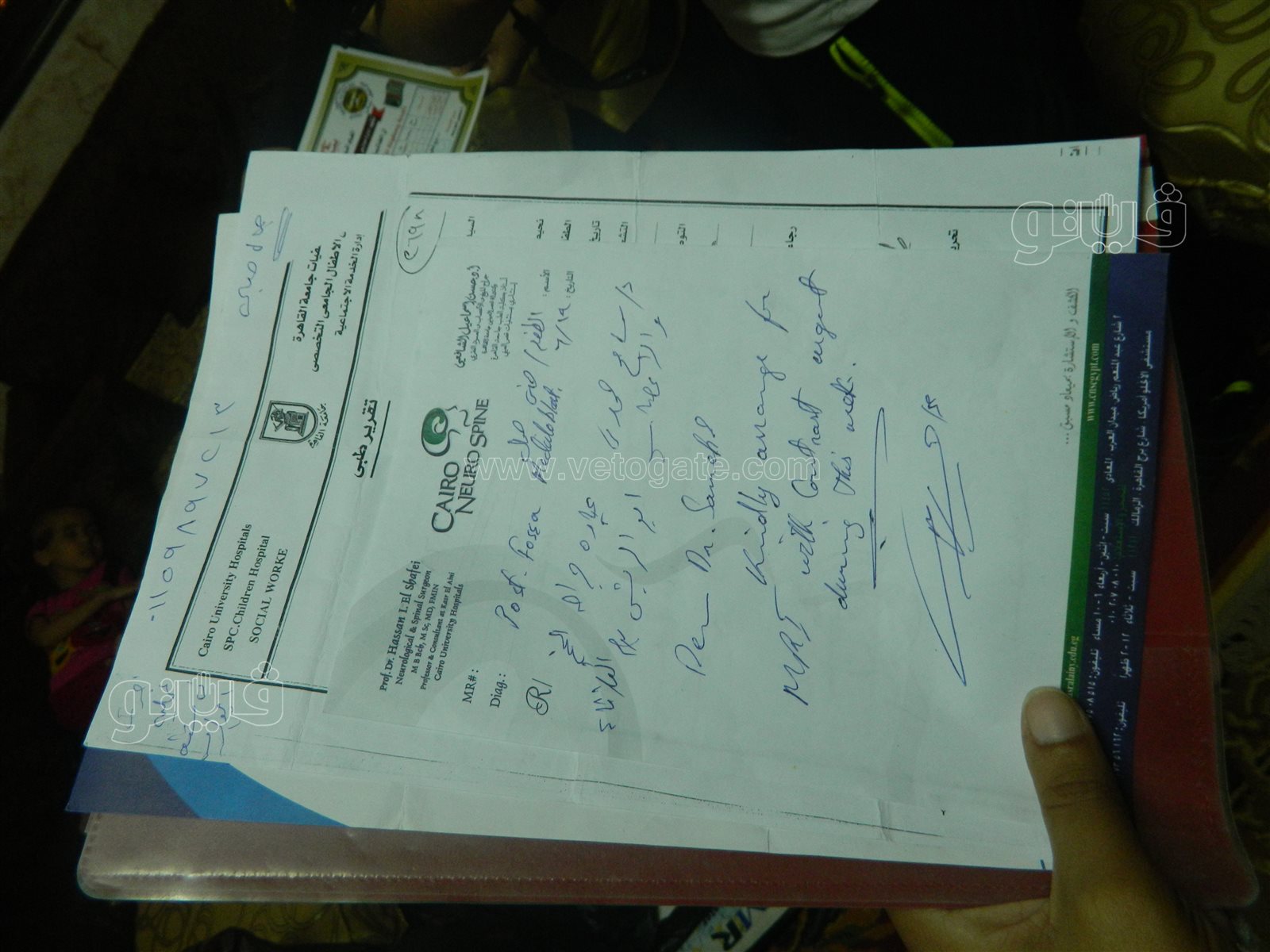 وأضاف: «معهد الأورام كان بيبعتني لأبو الريش والعكس دا يقولي الصمام اتسد ودا يقولي شغال، واروح لدكاترة بره يقولي حاول تبدأ بسرعة في الإشعاع الذري لأن لو الورم زاد مش هينفع معاها حاجة، فاضطريت أروح 57357 علما أن فيها جراحة وفيها إشعاع ذرى ومش هضطر للذهاب إلى مستشفى أخرى، لو دا واحد سعودي أو كويتي كان استقبلوه بس انا مليش مكان في بلدي».