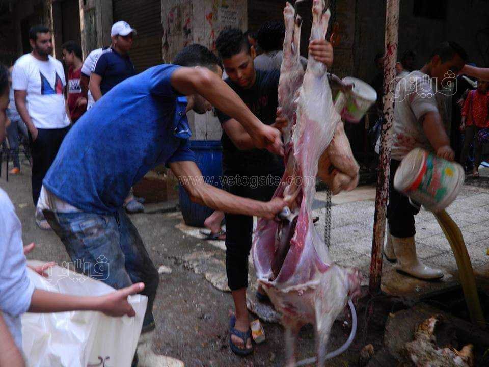 بالصور.. مظاهر ذبح الأضحيات بحدائق المعادي