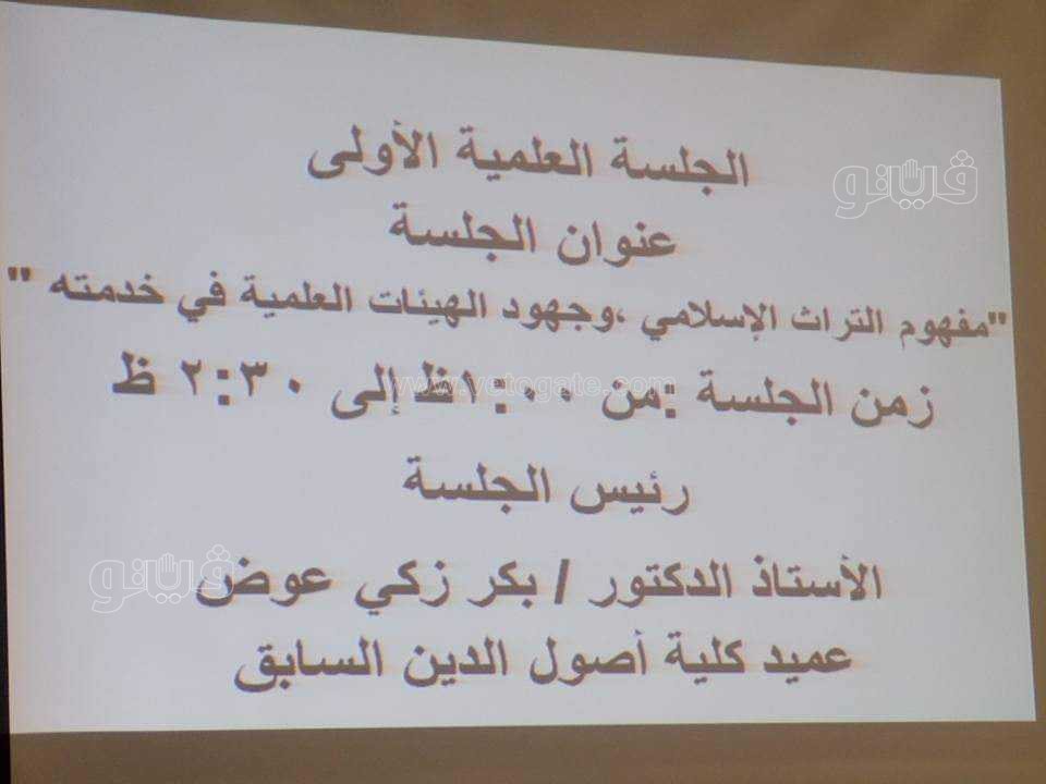 وتناقش الجلسة الافتتاحية التي يرأسها الدكتور محمود حمدي زقزوق وزير الأوقاف الأسبق، 6 أبحاث تدور حول مفهوم التراث الإسلامي وجهود الهيئات العلمية في خدمته.