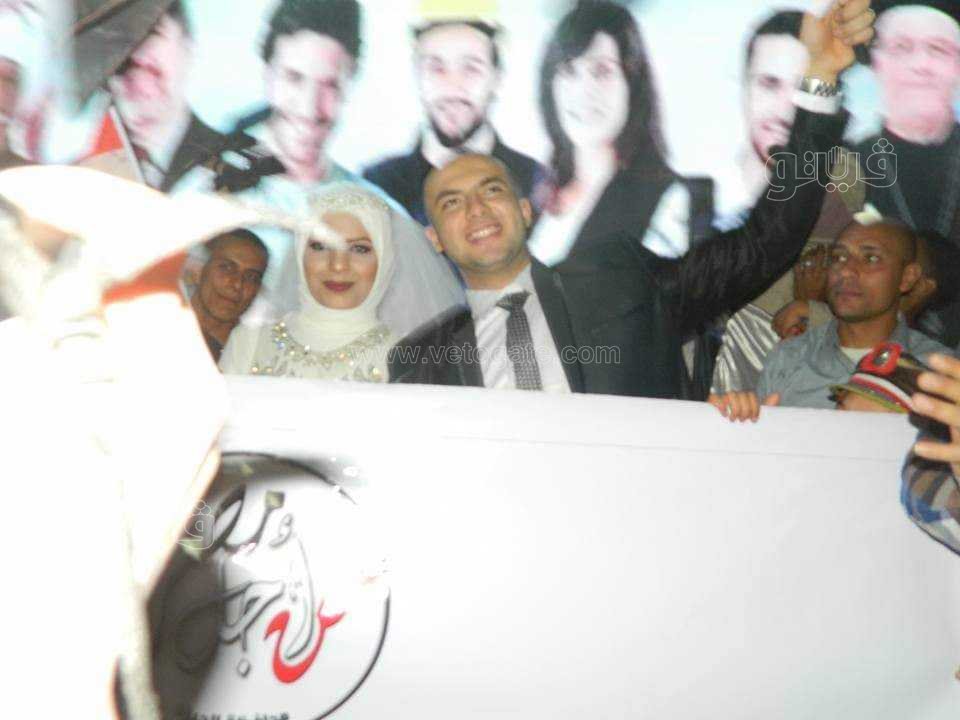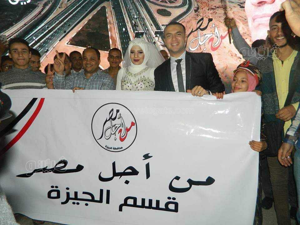 عروسان يحتفلان بفوز السيسي بالرئاسة أمام جامعة القاهرة (فيديو وصور)