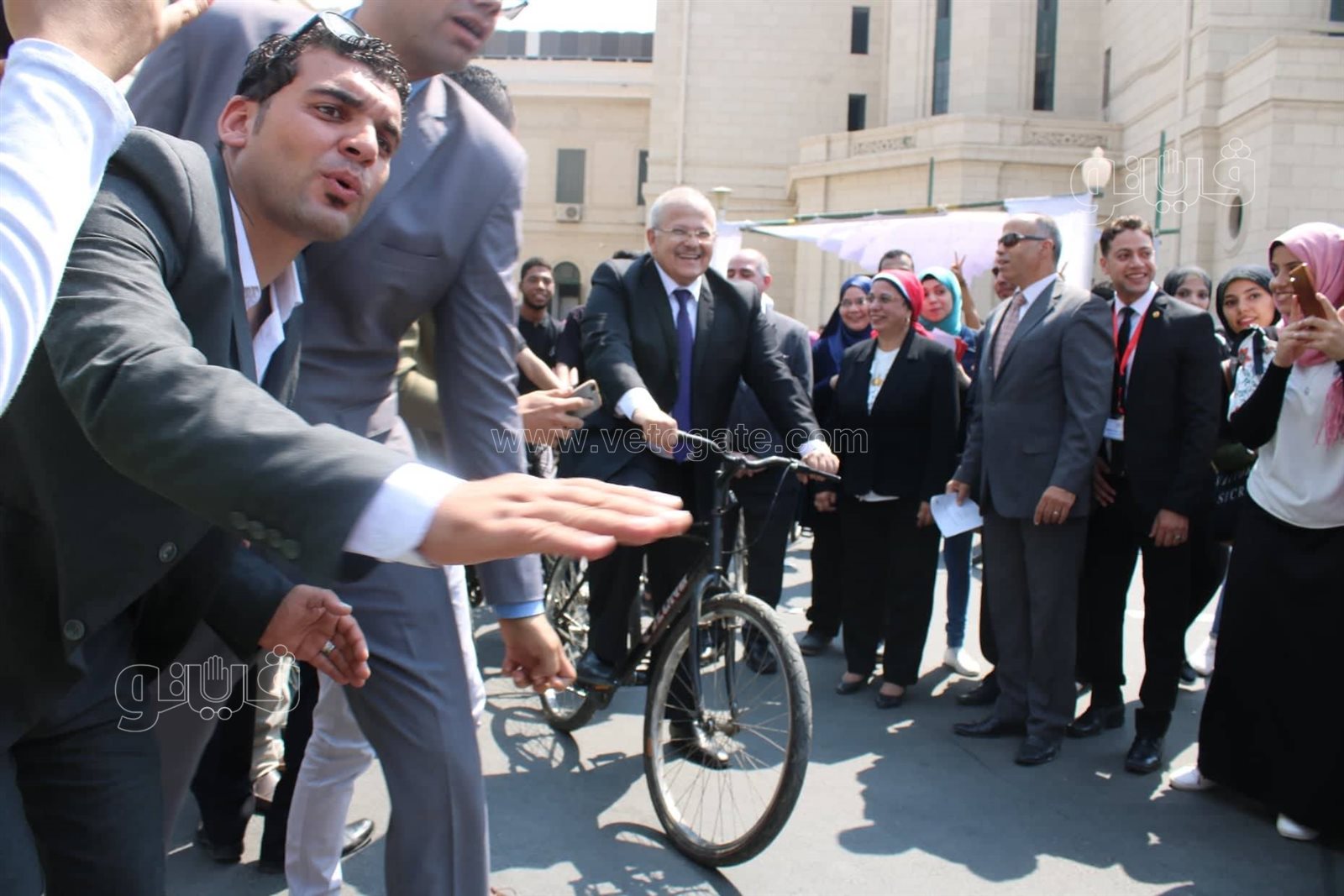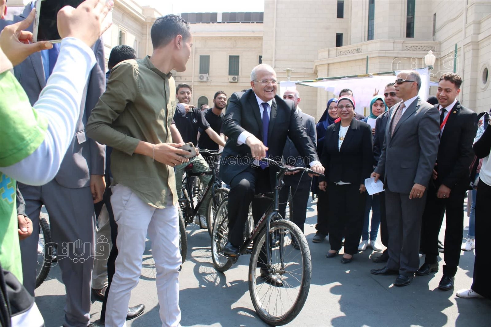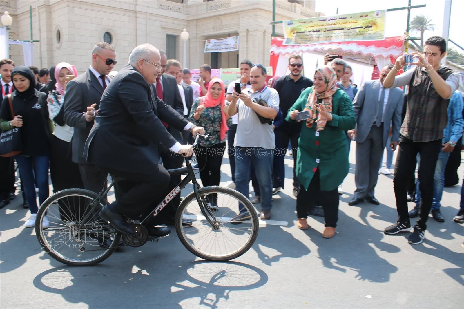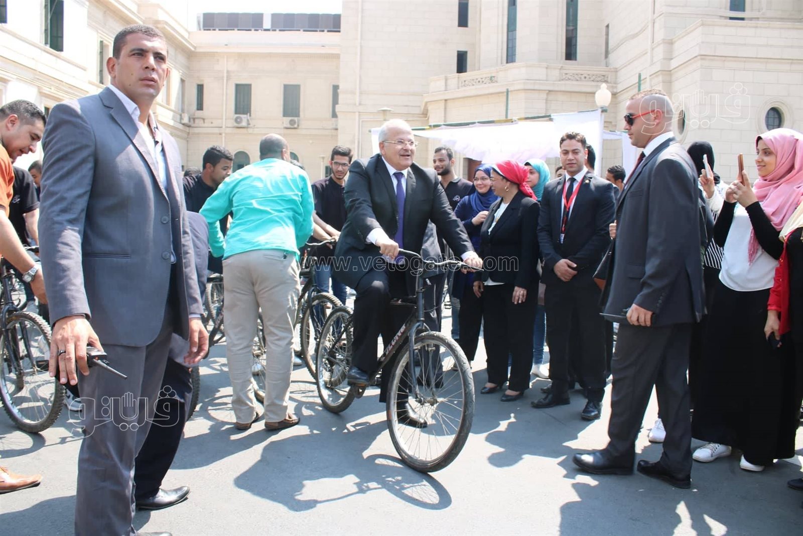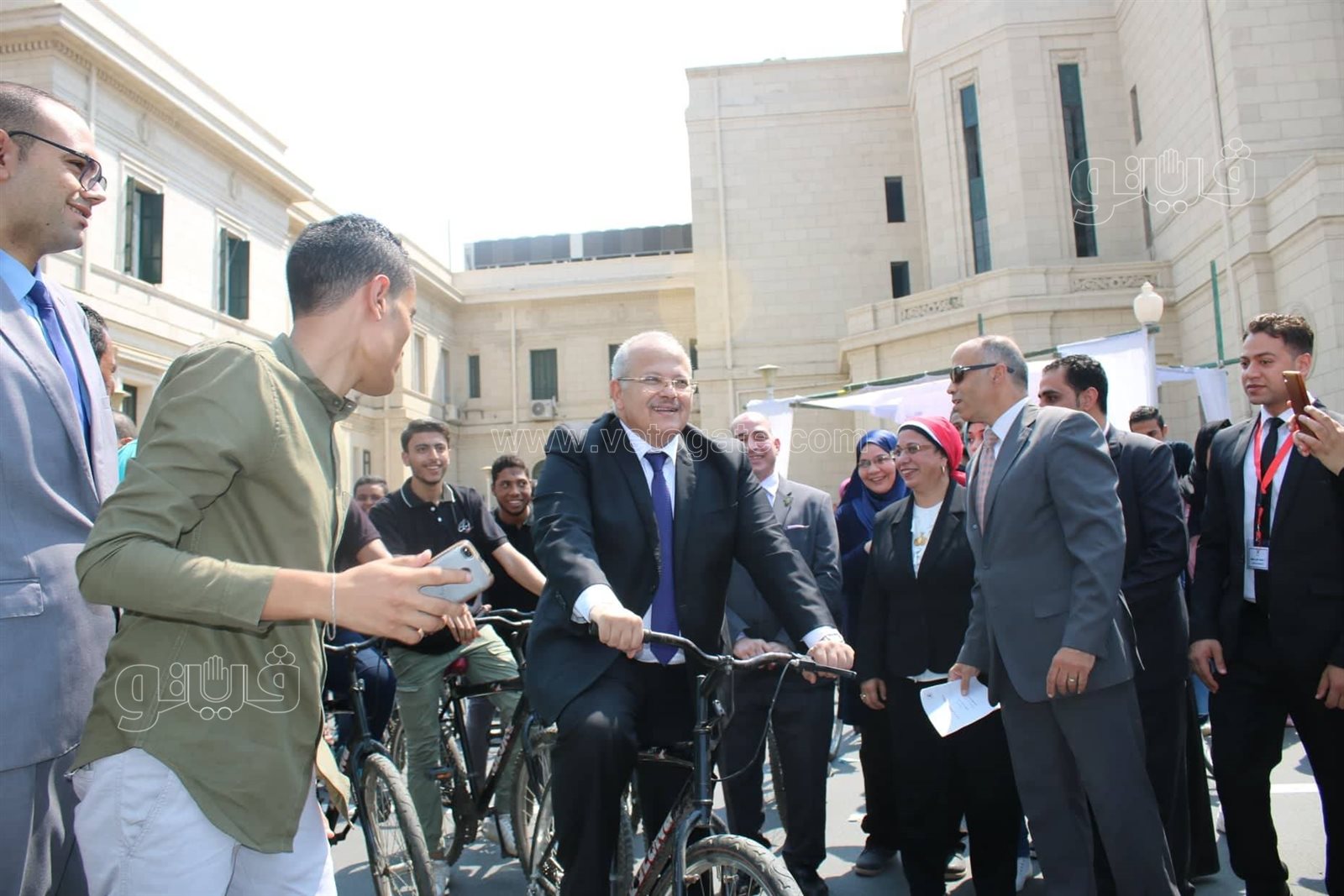 رئيس جامعة القاهرة يشارك الطلاب بماراثون دراجات (فيديو)