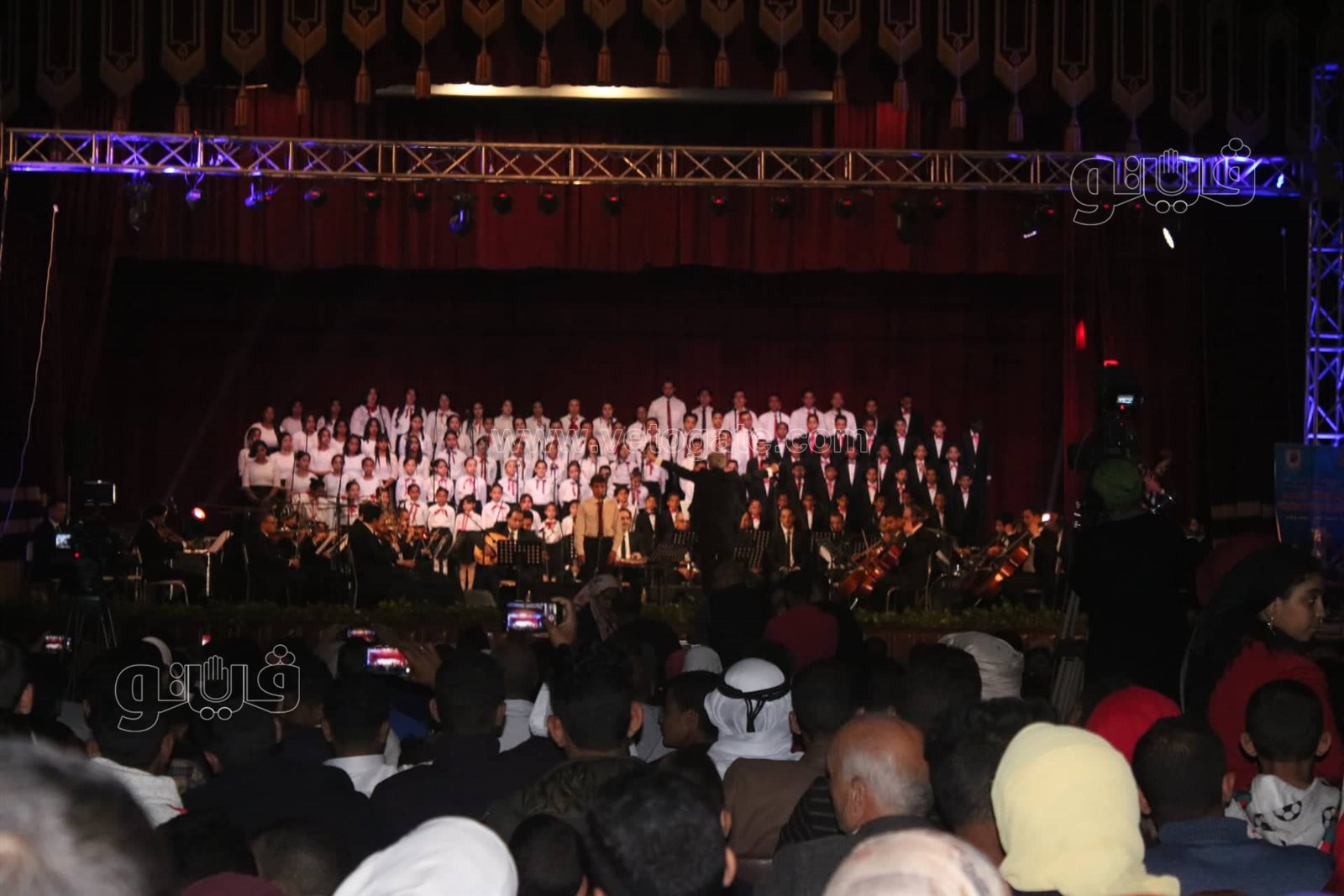 وافتتح الكورال الحفل بأغنية "الأرض بتكلم عربي"، "عليك الصلاة والسلام"، "وأما تجليني"، "بسم الله، الله أكبر".