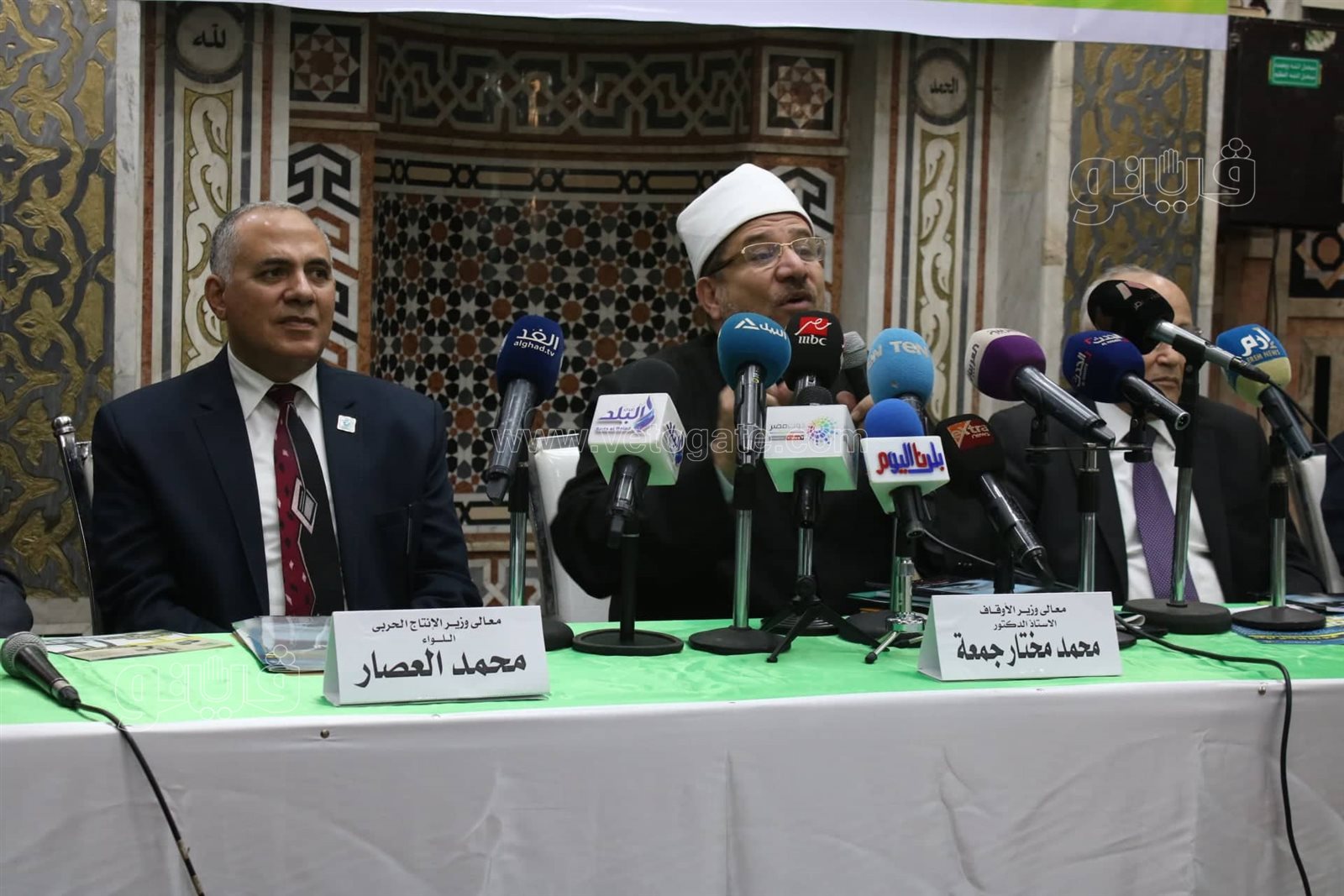 وقال الدكتور محمد مختار جمعة، وزير الأوقاف خلال كلمته في المؤتمر إن الوزارات الثلاثة "الأوقاف والإنتاج الحربى والرى" تعمل جاهدة منذ ثلاثة شهور لتجربة القطع الموفرة على كل مصر.
