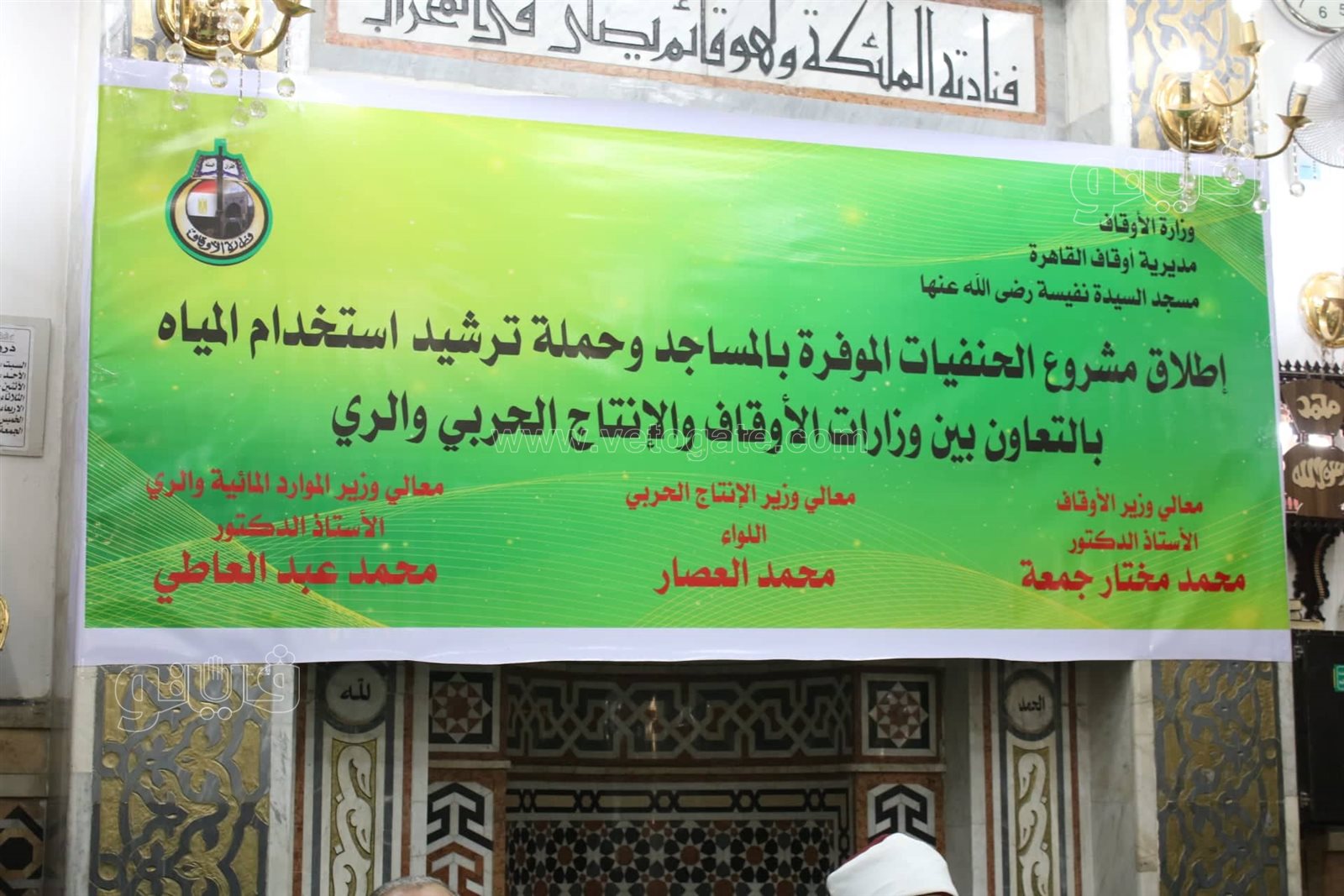 أطلق وزراء الأوقاف والري والموارد المائية والإنتاج الحربي مشروع الحنفيات الموفرة لترشيد استهلاك المياه من مسجد السيدة نفيسة رضي الله عنها.