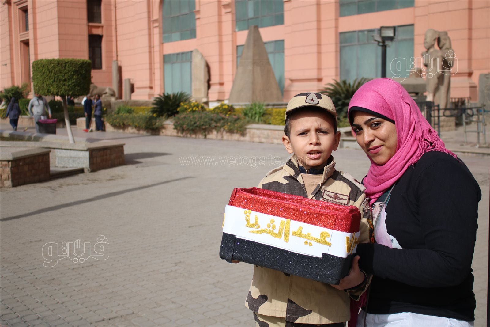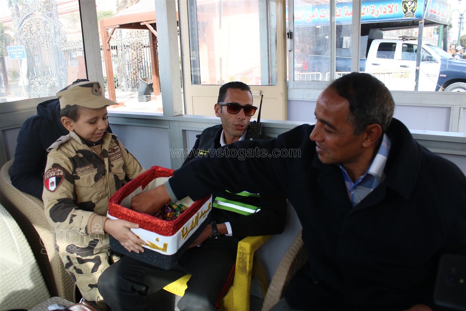 "فيتو" التقت عمر وشاركته جولته داخل المتحف المصري، أثناء تقديمه الشيكولاتة لرجال الشرطة، وهو يهنئهم بعيدهم وسط سعادة كبيرة غمرتهم به، جعلتهم يلتقطون معه الصور ويحملونه على الأكتاف، ولفت ذلك أنظار جميع الزائرين للمتحف، من السياح الأجانب والمصريين، الذين راحوا يتسابقون على التقاط الصور معه.