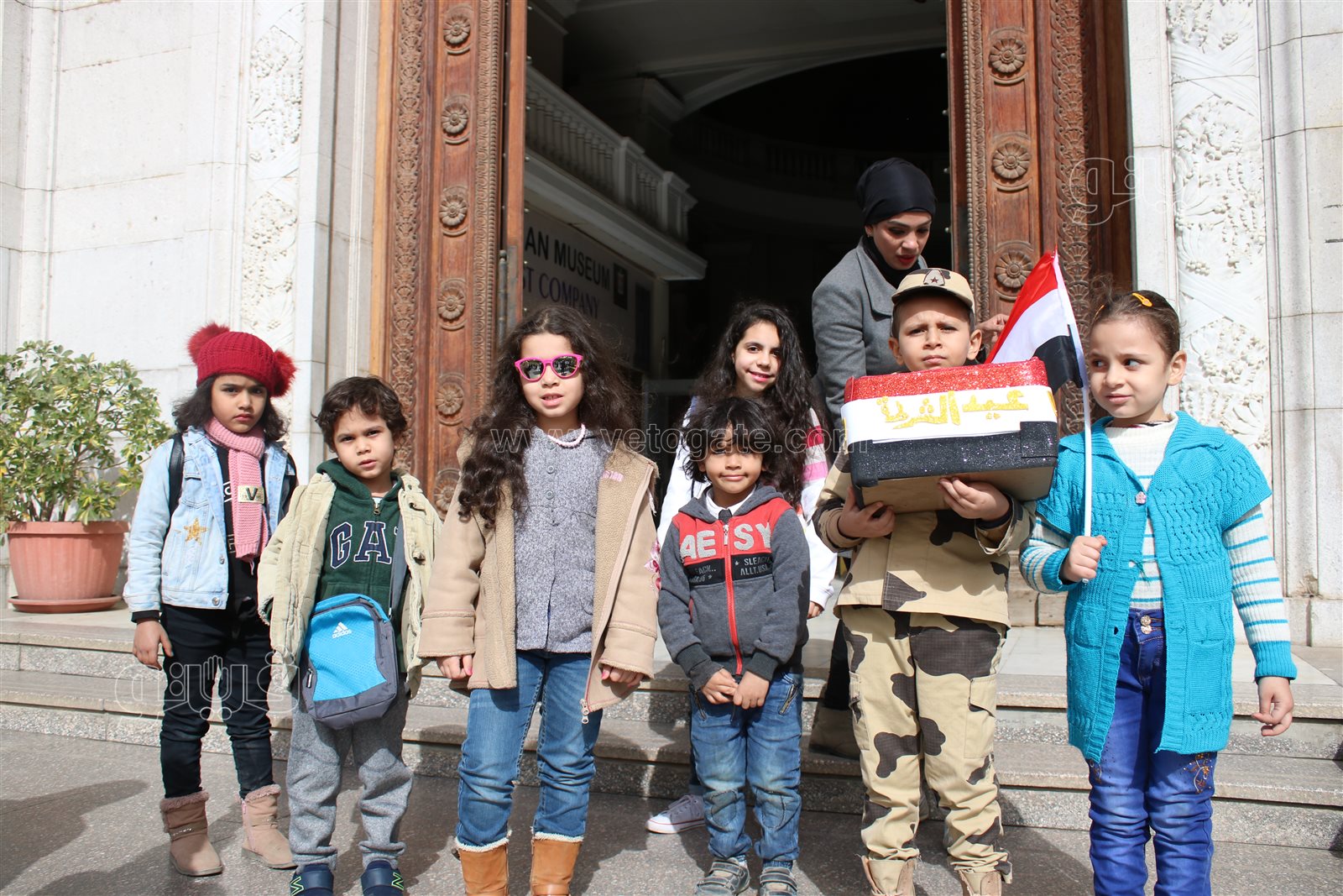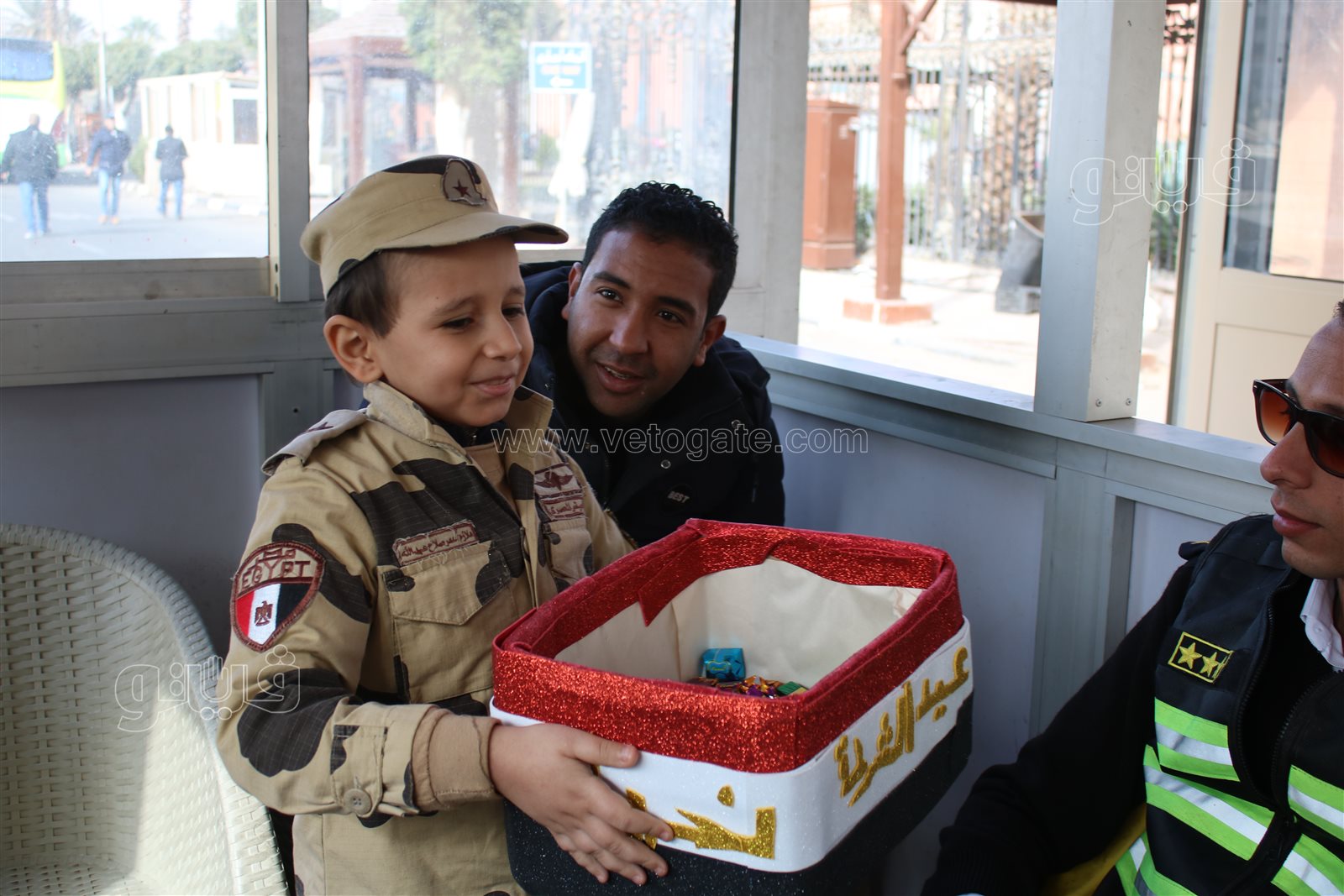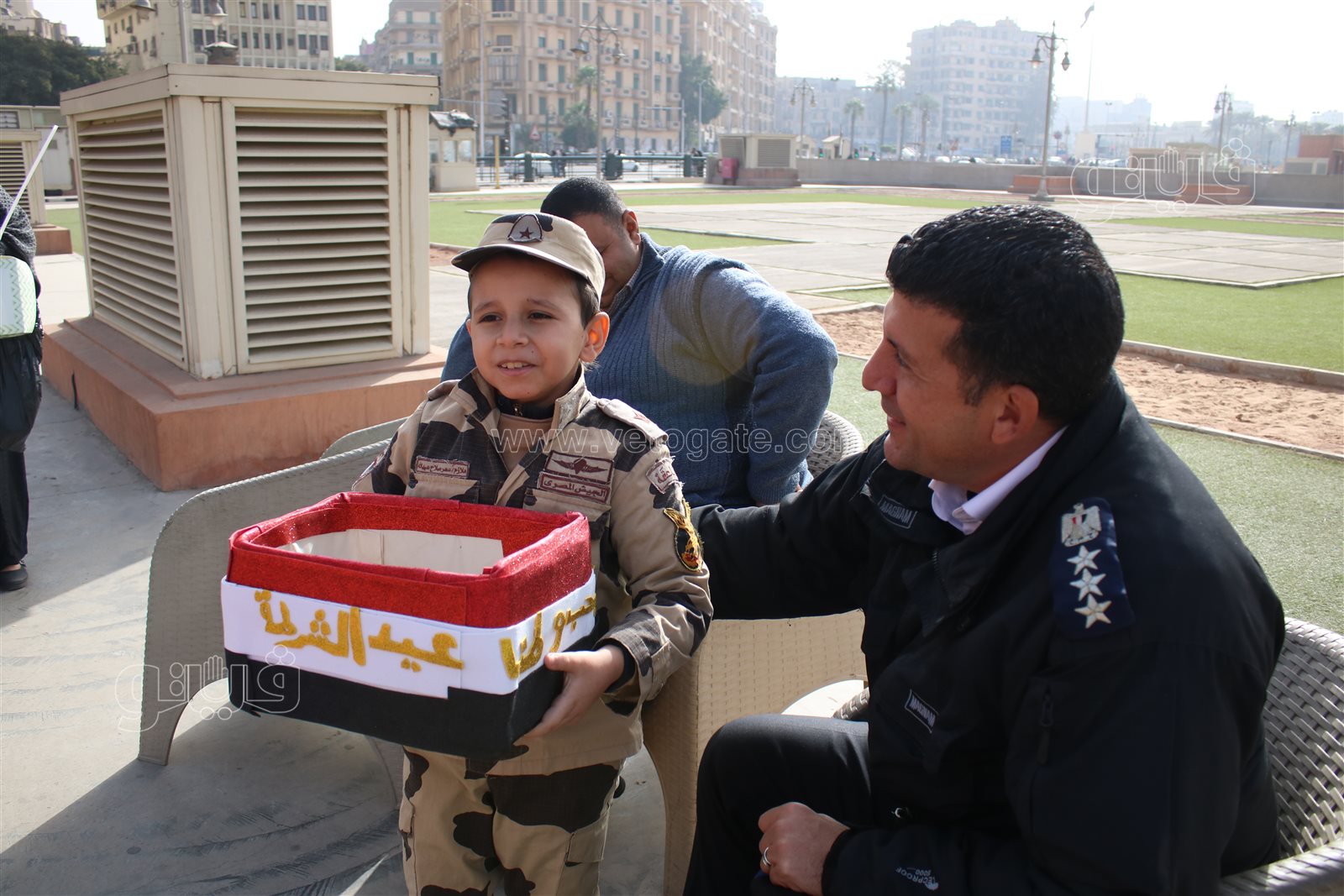 وقدم عمر التهاني لرجال الشرطة من خلال صندوق يحمله، مدونا عليه عبارات (تحيا مصر - عيد الشرطة - مبادرة أطفال بنحب وطنا)، وأثناء الجولة قدم الطفل التحية العسكرية والشيكولاتة للواء محمد الغول مساعد وزير الداخلية لشرطة السياحة والآثار، الذي كان في حملة تفقدية للخدمات المعينة لتأمين المتحف.