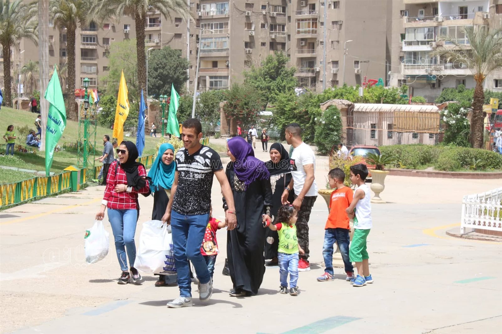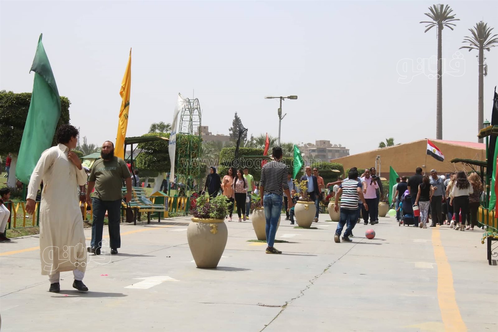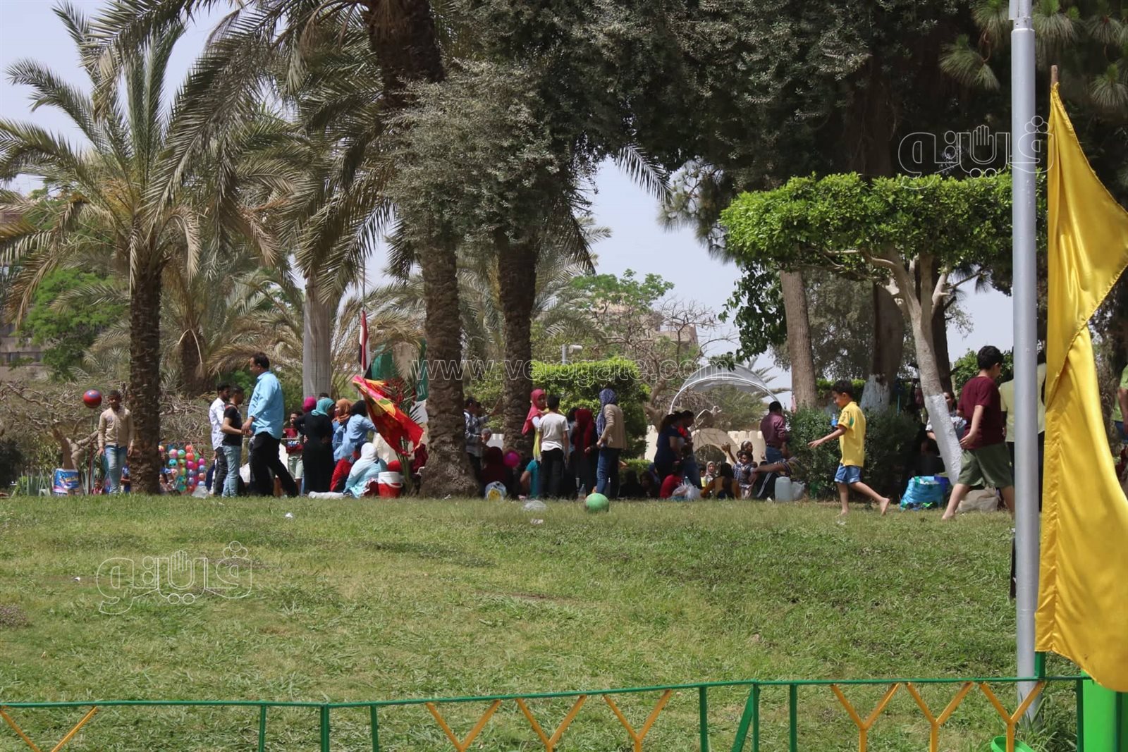 وانتشر الأطفال بأرجاء الحديقة للعب الكرة، فيما حرص الكبار على التواجد للاستمتاع بأجواء الأعياد بالحديقة الدولية، وسط تكثيفات أمنية بمحيط الحديقة من تواجدها بمحيط الحديقة، لتأمين الاحتفالات.