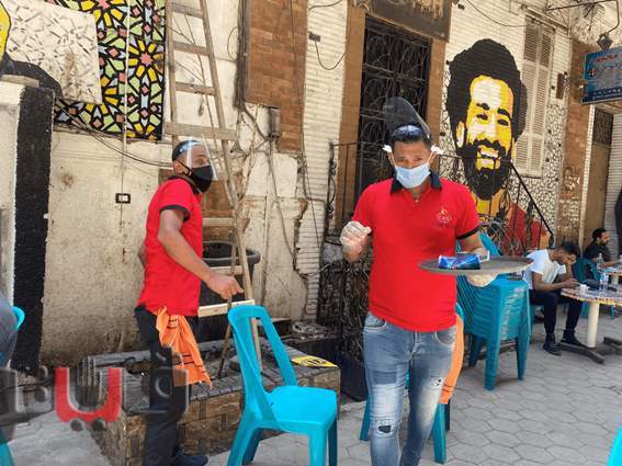 وحرص معظم أصحاب المطاعم والمحال والمقاهي على فتح أبواب محالهم أمام الزبائن مرتدين الكمامات الطبية، تنفيذا لتعليمات الحكومة باتباع الإجراءات الوقائية من تعقيم وتطهير والحفاظ على التباعد الاجتماعي.