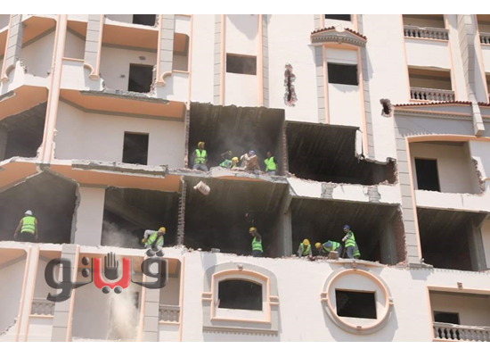 وقال "الفقى" إن البرج سوف يتم هدمه بدءا من اليوم السبت بإزالة الطوابق من الحادى عشر إلى السابع يدويا عن طريق عمال الهدم، ثم تتم عملية الإزالة باستخدام المعدات اللازمة والشاكوش، حتى إزالة المبنى بالكامل حتى سطح الأرض، ورفع الأنقاض، مشيرا إلى تحميل المتعدي التكلفة الخاصة بعملية الإزالة.