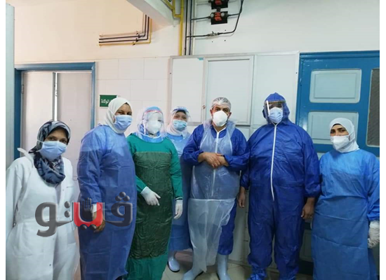 إخصائي التخدير الدكتور أحمد رشدي نائب المدير ، الدكتورة أمنية رئيس مكافحة العدوى والطقم المرافق لها وطقم التمريض والدكتور أحمد الشرقاوي مدير المتابعة بالمستشفى وفريق التمريض.