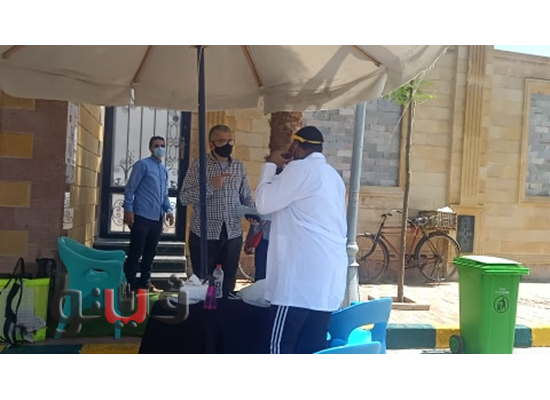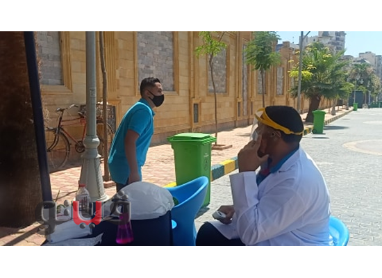 وتمركزت الفرق الطبية على البوابة الرئيسية والخلفية وقاموا عمال النظافة بالرش والتعقيم وترك المسافات بين المقاعد