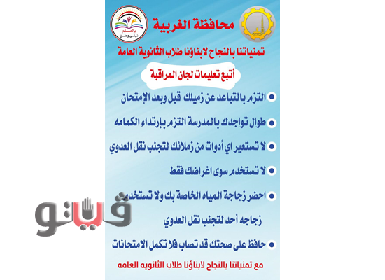 وقال رجل الأعمال أحمد منير عطية صاحب المبادرة، أنه تم إعداد 122 بوستر إرشادي لابنائنا طلاب الثانوية العامة بلجان الامتحانات بنطاق المحافظة لتوعيتهم للحفاظ على صحتهم من خطر الإصابة بفيروس كورونا المستجد.