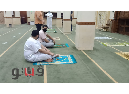 وحرص المتوافدون على المسجد على اصطحاب سجادة الصلاة الخاصه بهم وارتداء الكمامات وخضعوا جميعا للتعقيم من خلال بوابة التعقيم على مدخل المسجد.