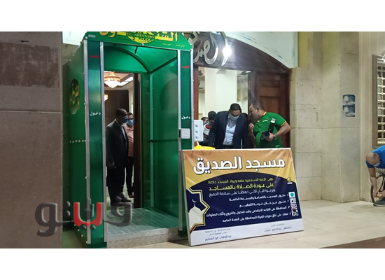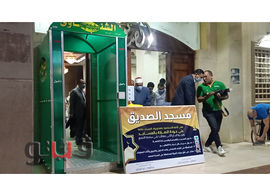 محافظ الدقهلية يخضع للتعقيم على باب مسجد الصديق | فيديو وصور