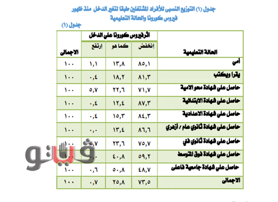 تأثير فيروس كورونا على الدخل طبقا للحالة التعليمية