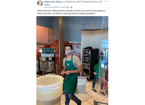 فيسبوك أن هذا الشاب رفض تقديم الخدمة لها لأنها لا ترتدي الكمامة الطبية على