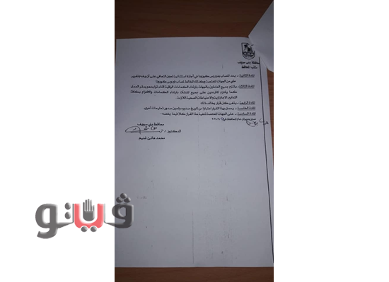 محافظة بني سويف ، في بيان لها ، أن المادة الأولى من قرار المحافظ تضمنت تكليف السكرتير