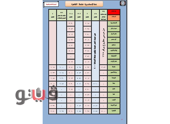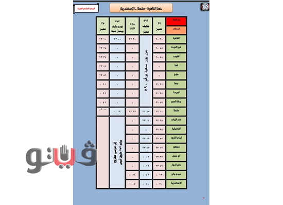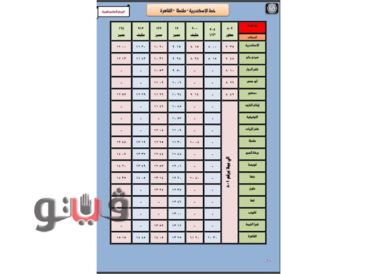 وجاءت مواعيد القطارات على الوجه البحري كالتالي
