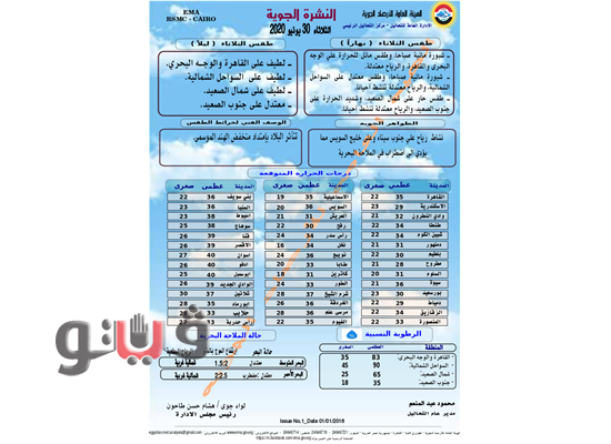 وفيما يلي بيان بدرجات الحرارة المتوقعة اليوم على مدن ومحافظات مصر..