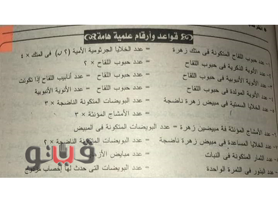 استكمالا للخدمات التي تقدمها بوابة فيتو لطلاب الصف الثالث الثانوي، ننشر اهم قوانين مادة الأحياء بمنهج الثانوية العامة خلال العام الدراسي 2019-2020.