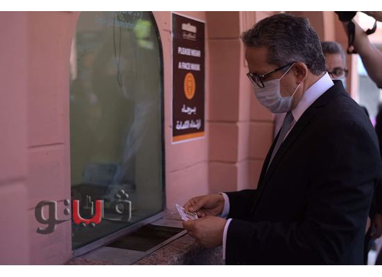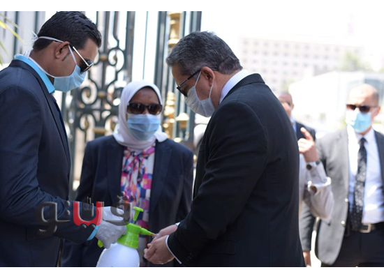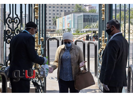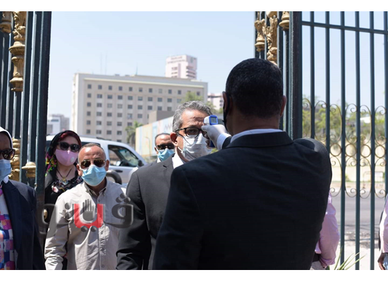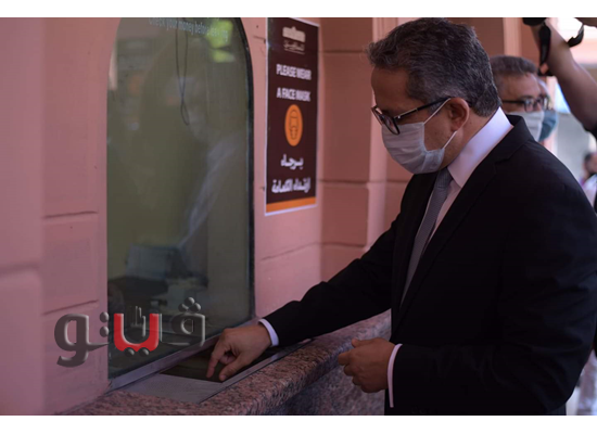 وخضع الدكتور خالد العناني وزير السياحة والآثار لإجراءات الوقاية والتعقيم قبل الدخول للمتحف المصري بالتحرير، حيث قام بقطع تذكرة من الموظف المسئول واتبع الإرشادات الوقائية من تعقيم اليدين والوقوف علي العلامات المحددة بالأرض حتي دخول العرض.