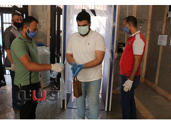 وتفقد الدكتور محمود المليجى نائب ريس الجامعة لشون خدمة المجتمع وتنمية البيئة كافة الاجراءات الاحترازية بداية من بوابات الجامعة أثناء دخول الطلاب ومراجعة كافة الاجراءات الخاصة بكل كلية يعقد بها الامتحانات اليوم و متابعة أعمال التطهير والتعقيم للطلاب وتنظيم عملية الدخول من خلال بوابات تعقيم ذاتية على بوابات الدخول الرئيسية للجامعة وعدد من الكليات،
