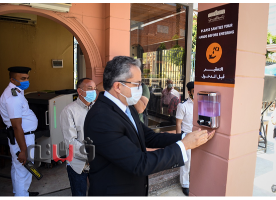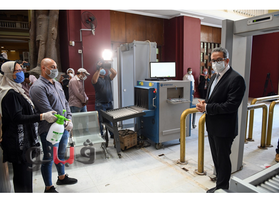وخلال هذه الزيارة، أجرى وزير السياحة والآثار جولة داخل المتحف تفقد خلالها تطبيق ضوابط السلامة الصحية والإجراءات الاحترازية التي أصدرتها الوزارة لإعادة الفتح التدريجي لمجموعة من المتاحف والمواقع الأثرية ضمن استئناف الحركة السياحية الوافدة إلى مصر، لافتا إلى أن إعادة فتح المتحف المصرى بالتحرير يأتي ضمن المتاحف والمواقع الأثرية التي يتم افتتاحها تدريجيا بالمحافظات المختلفة منها القاهرة والإسكندرية ومطروح والغردقة والاقصر وأسوان.