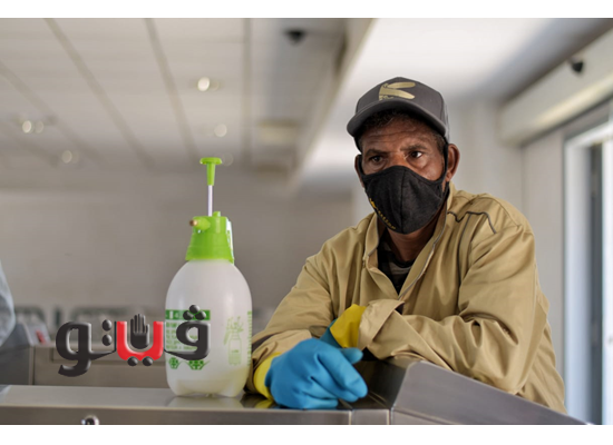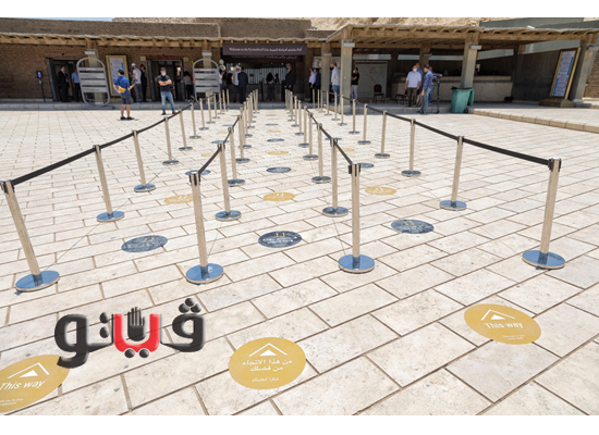 الأرض لتنظيم السير والحركة ومراعاة المسافة بين الزائرين، وكذلك استخدام المطهرات