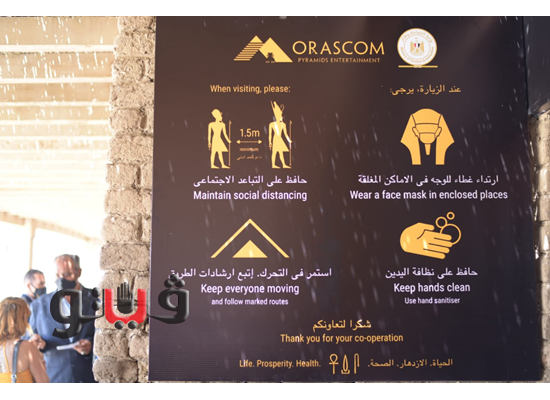 أوراسكوم بيراميدز تطبق الإجراءات الاحترازية أثناء دخول الزوار لمنطقة الأهرامات| صور