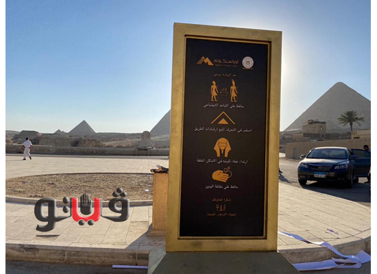 بيراميدز، أنه تم نشر العديد من العلامات الإرشادية على مداخل منطقة الأهرامات وداخل