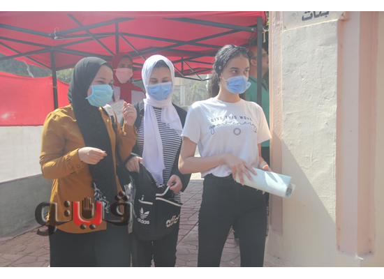 التباعد الاجتماعي والكمامات الطبية.. أبرز مشاهد طلاب الثانوية بلجنة مصطفى أبو عميرة | صور
