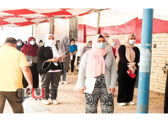 وحرص عدد من الطلاب على إرتداء الكمامات والفيس شيلد وسط تنظيم بينهم بالتباعد الاجتماعي أمام اللجان تمهيدا للدخول.