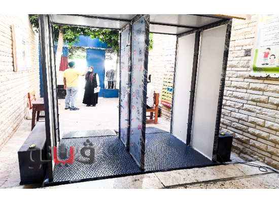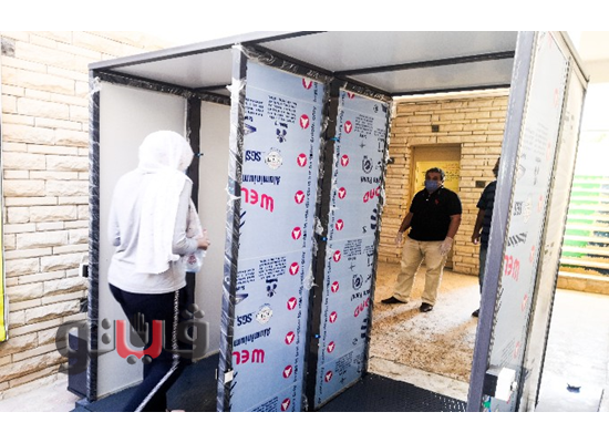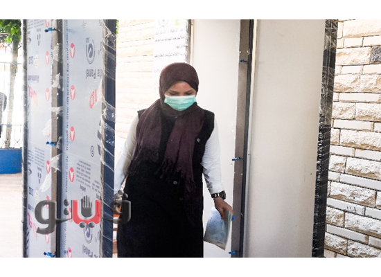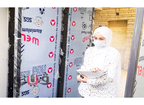 وتقوم الطالبات بالمرور على بوابة التعقيم الإلكترونية ويعقبها استلام الكمامات والمطهرات الخاصة بهن.