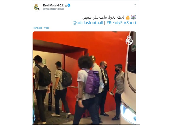 بث نادي ريال مدريد، عبر حسابه الرسمي بتويتر، مقطع فيديو لحظة دخول لاعبي فريق ريال مدريد ملعب سان ماميس.