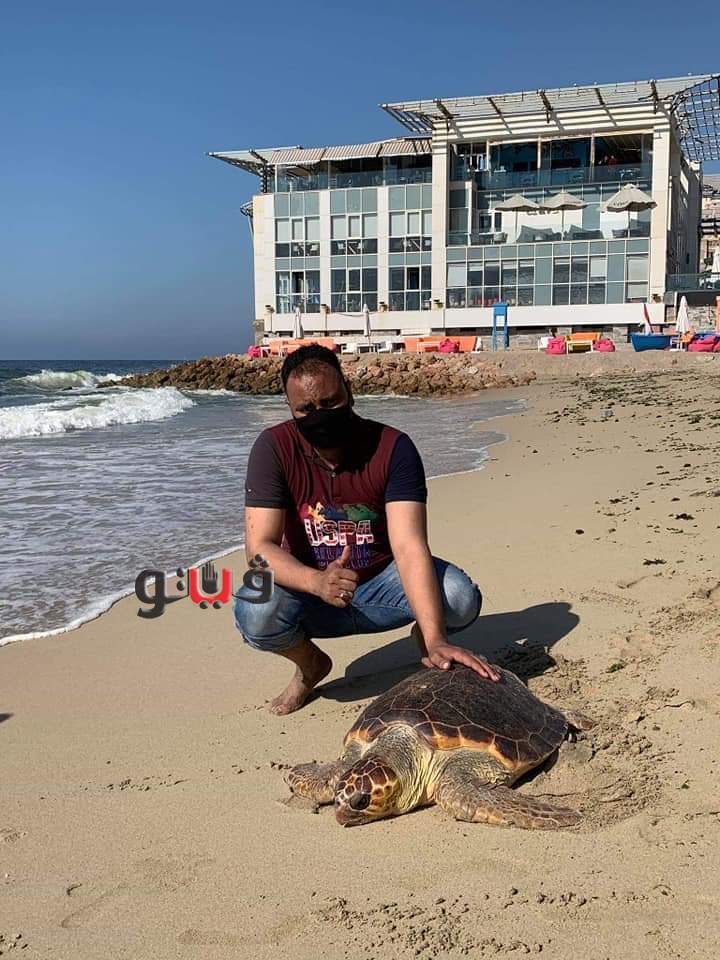 بعد تداول صورها على "فيس بوك".. إنقاذ السلحفاة "فريدة" وإطلاقها بالبحر المتوسط | صور
