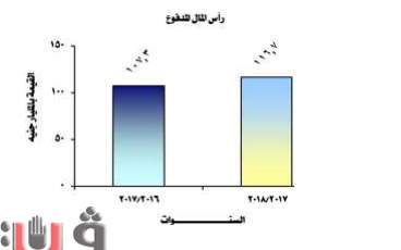 بلغــــت قيمـة إجمالي رأس المـال المدفوع 116.7 مليار جنيه عــام 2017/2018 مقابـل 107.3 مليار جنيـه عام 2016/2017 بنسبة زيــادة قدرها 8٫7 ٪