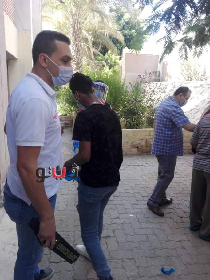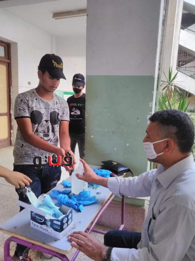 وتم توقيع كشف درجات الحرارة على الطلاب والمشاركين في أعمال الامتحانات، وتوزيع الكمامات والجوانتيات وتعقيم الأيدي بالكحول ووسائل التطهير اللازمة.