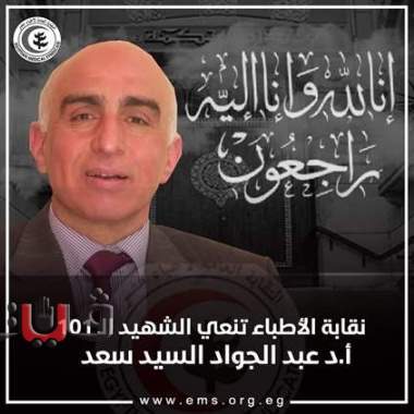 نعت النقابة العامة للأطباء الشهيد الدكتور عبد الجواد السيد سعد ، الأستاذ بمعهد الكبد بالمنوفية ، والذي توفى في عزل معهد الكبد إثر إصابته بڤيروس كوڤيد 19.