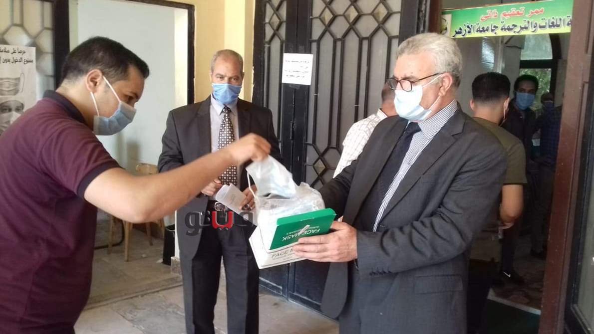 عمداء كليات الأزهر يوزعون الكمامات على الطلاب قبل الدخول للامتحانات | صور