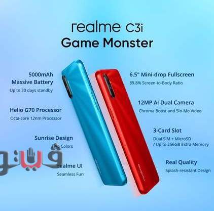تخطط شركة realme لطرح نسخة من هاتف C3i والذي يأتي بمميزات رائعة وسعر منافس، سيكون realmeC3i متاحًا في السوق في إصدار واحد بسعة 3 جيجابايت رام ، و32 جيجابايت روم مع معالج Helio G70.