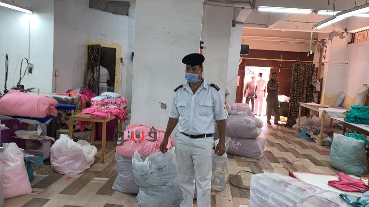 ضبط مصنع ملابس ينتج كمامات مغشوشة بعين شمس