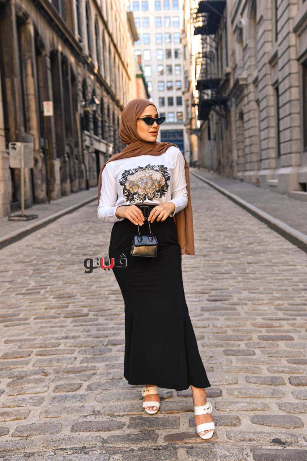 وأكلمت الفاشون بلوجر نور الهدى، أو ارتداء الچاكيت الچينز مع قميص أسود مع تنورة وحذاء رياضي، أو خلع الچاكيت ووضع القميص بداخل البنطلون واستخدام حزام عريض.