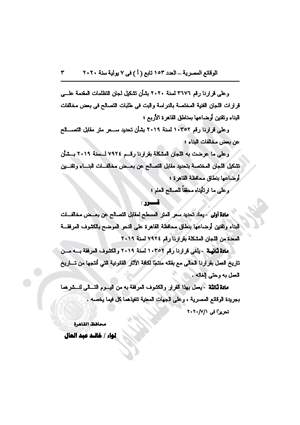 نشرت الجريدة الرسمية في عددها رقم 153 تابع "أ " الصادر في يوم 7 يوليو لسنة 2020 قرار محافظ القاهرة رقم 3967 لسنة 2020 بشأن تحديد سعر المتر المسطح لمقابل التصالح عن بعض مخالفات البناء.