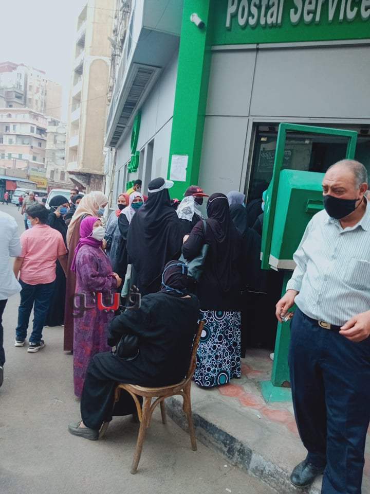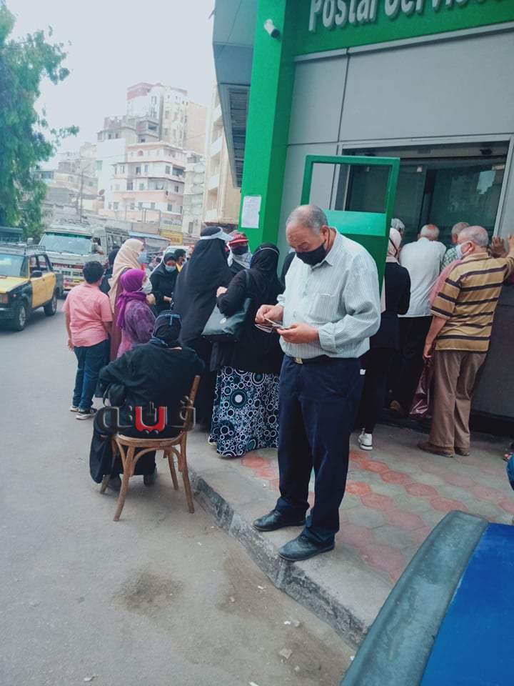 وتجمع المواطنون أمام مكتب البريد للحصول على دورهم والجلوس بالمقاعد المخصصة لكبار السن فى الخارج، وكذلك الجلوس بمحيط مكتب البريد على الارصفة.