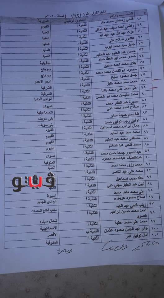 وحصلت "فيتو" على الأسماء المستحقة للعلاوات التشجيعية في مديريات الأوقاف والتي جاءت كالتالي: