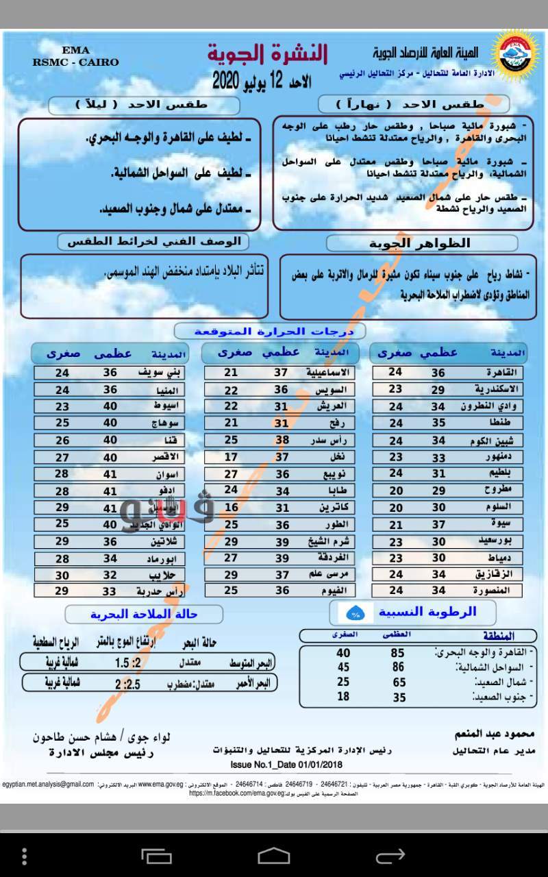 درجات الحرارة اليوم الأحد بمحافظات مصر