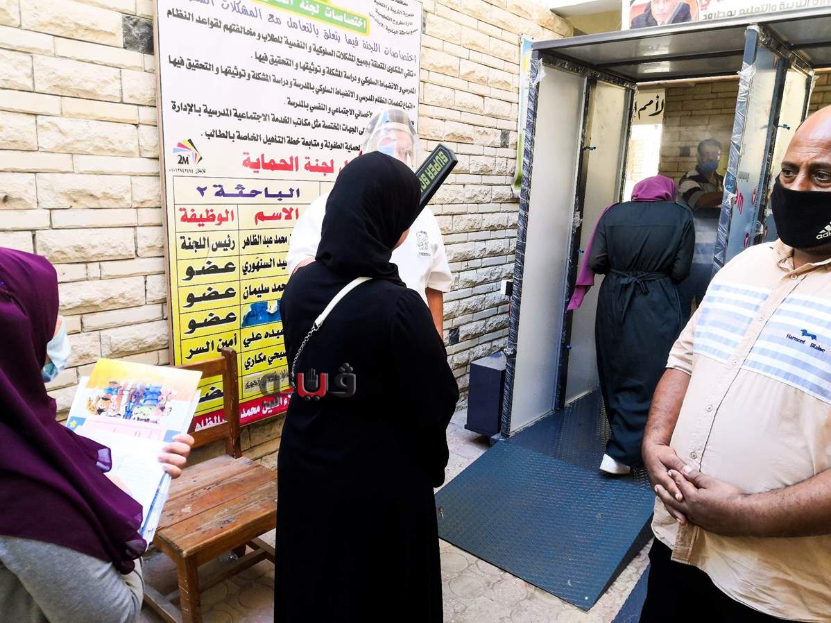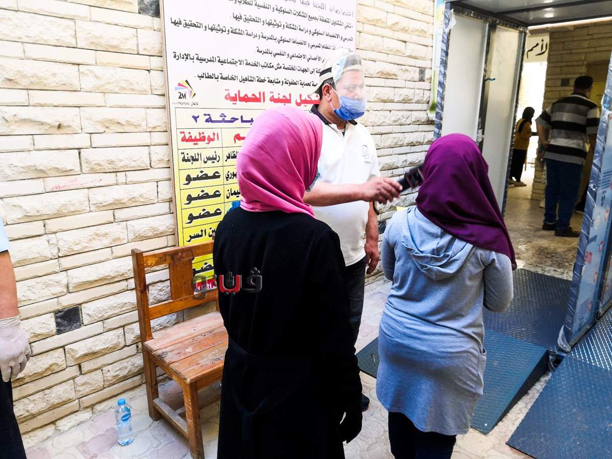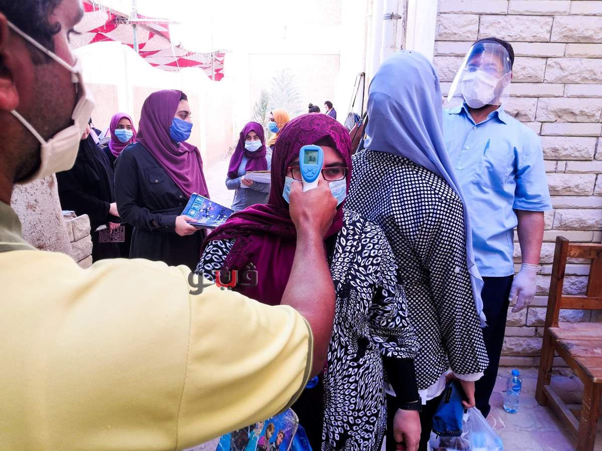 وألتزمت الطالبات بإرتداء الكمامات والفيس شيلد وسط تنظيم بينهم بالتباعد الاجتماعي أمام اللجان تمهيدا للدخول، حيث تم تنظيمهم في صفوف بين كل طالب والاخر متر ونصف مسافة تباعدية.