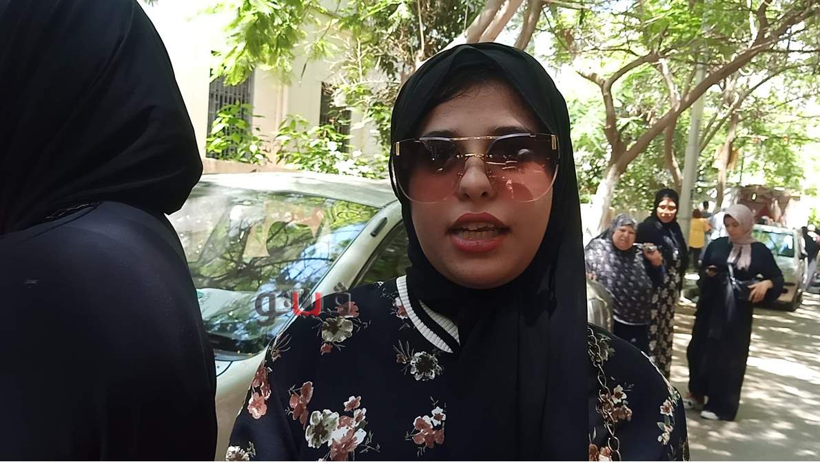 طالبات مدرسة أحمد زويل الدوليه مقر لجنه امتحان الثانوية العامة بالمنصورة ان امتحان الجغرافيا طويل والوقت لا يكفي والامتحان في مستوي الطالب المتوسط ومن لم يزاكر سيحكم علي الامتحان بانه صعب
